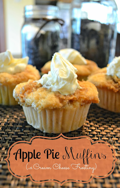 Then you add a dollop of cream cheese frosting, and these apple pie muffins are to die for. I think I’ll be bringing these apple pie muffins to Thanksgiving this year!