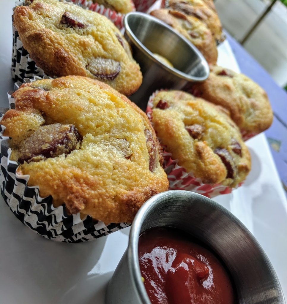 I’m always looking for family friendly recipes, my daughter isn’t even a picky eater, but I like to make meals a little more fun. Sometimes I think I appreciate kid food just as much as she does and chicken tenders end up on the meal plan often. So I made some fun corndog muffins with a box of Trader Joe’s cornbread mix.